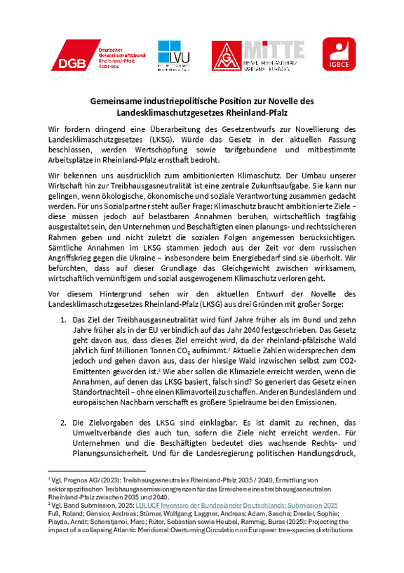 Die Sozialpartner fordern die Abgeordneten des rheinland-pfälzischen Landtags dazu auf, dem Gesetzentwurf in seiner jetzigen Fassung nicht zuzustimmen.